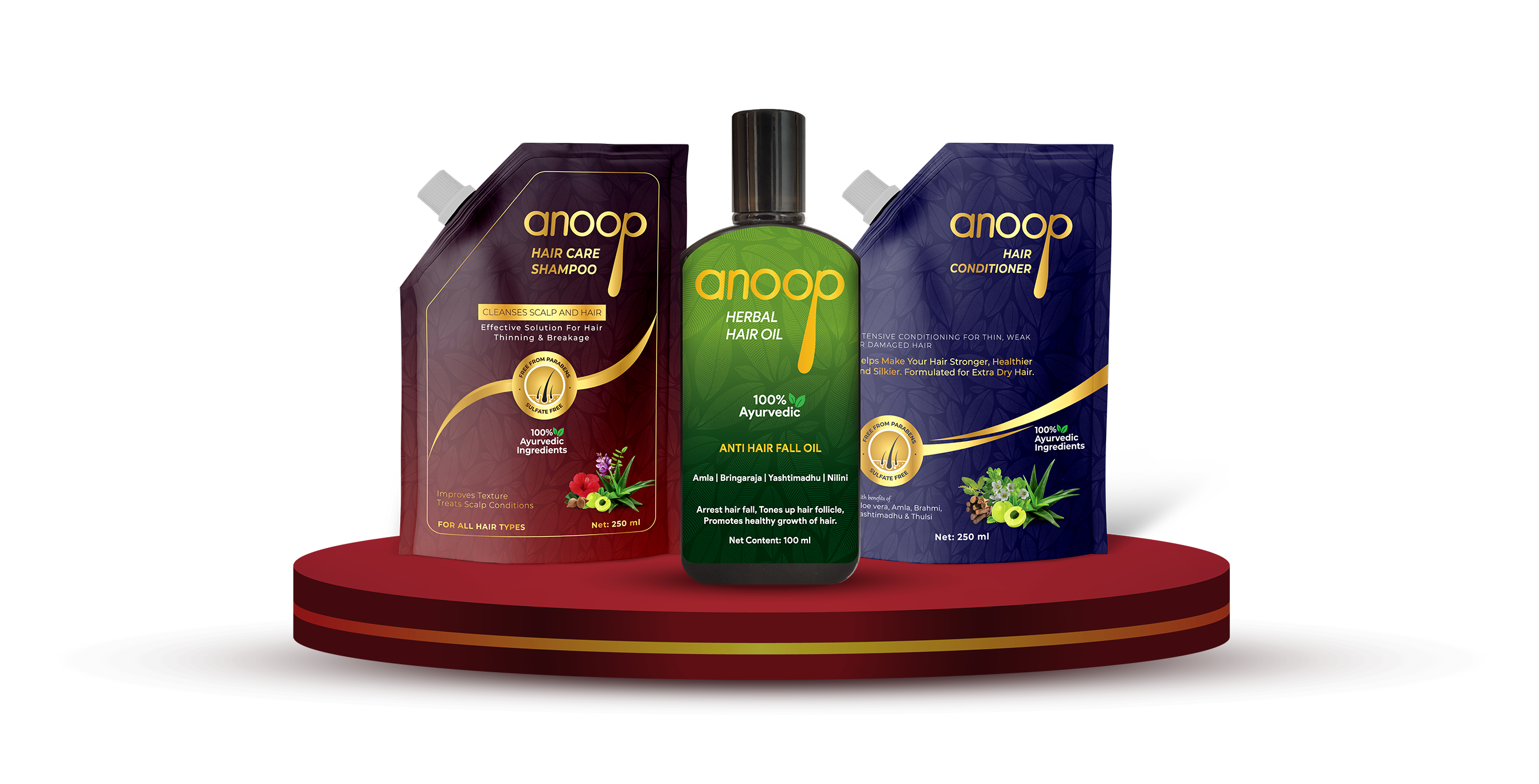 Anoop Hair Oil deeply nourishes the scalp and promotes hair growth using fresh Ayurvedic herbs.